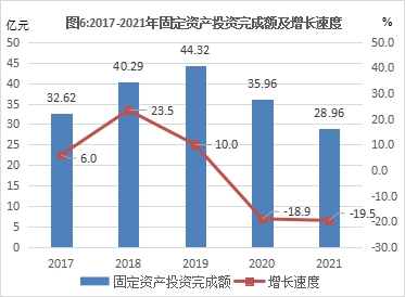 全年全縣社會固定資產(chǎn)投資完成28.96億元,同比下降19.5%。其中,新建項目26.59億元,同比下降20.16%;改建和技術(shù)改造項目2.37億元,同比下降9.4%。