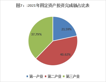 分三次產(chǎn)業(yè)看,全年第一產(chǎn)業(yè)完成投資6.25億元,占固定資產(chǎn)完成額21.59%;第二產(chǎn)業(yè)完成投資11.76億元,占固定資產(chǎn)完成額40.62%;第三產(chǎn)業(yè)完成投資10.94億元,占固定資產(chǎn)完成額37.79%。